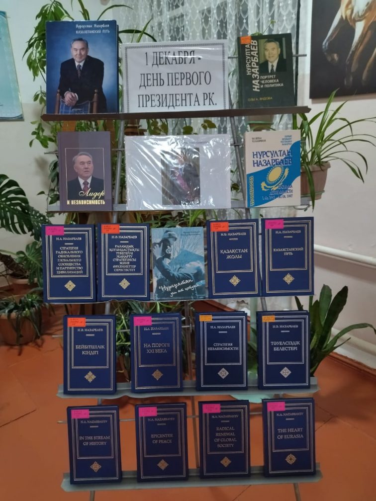1 желтоқсанда мектепте Тұңғыш Президент күніне арналған кітап көрмесі өтті.