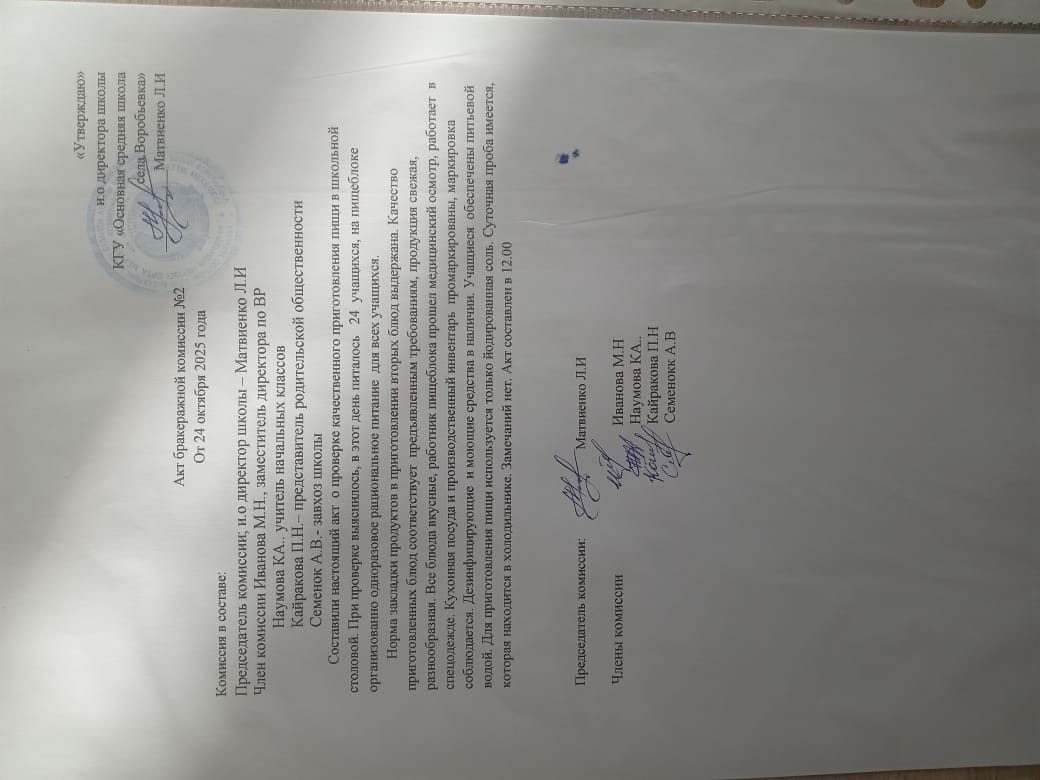 Бракераж комиссияларының актілері 2025-2026 оқу жылы